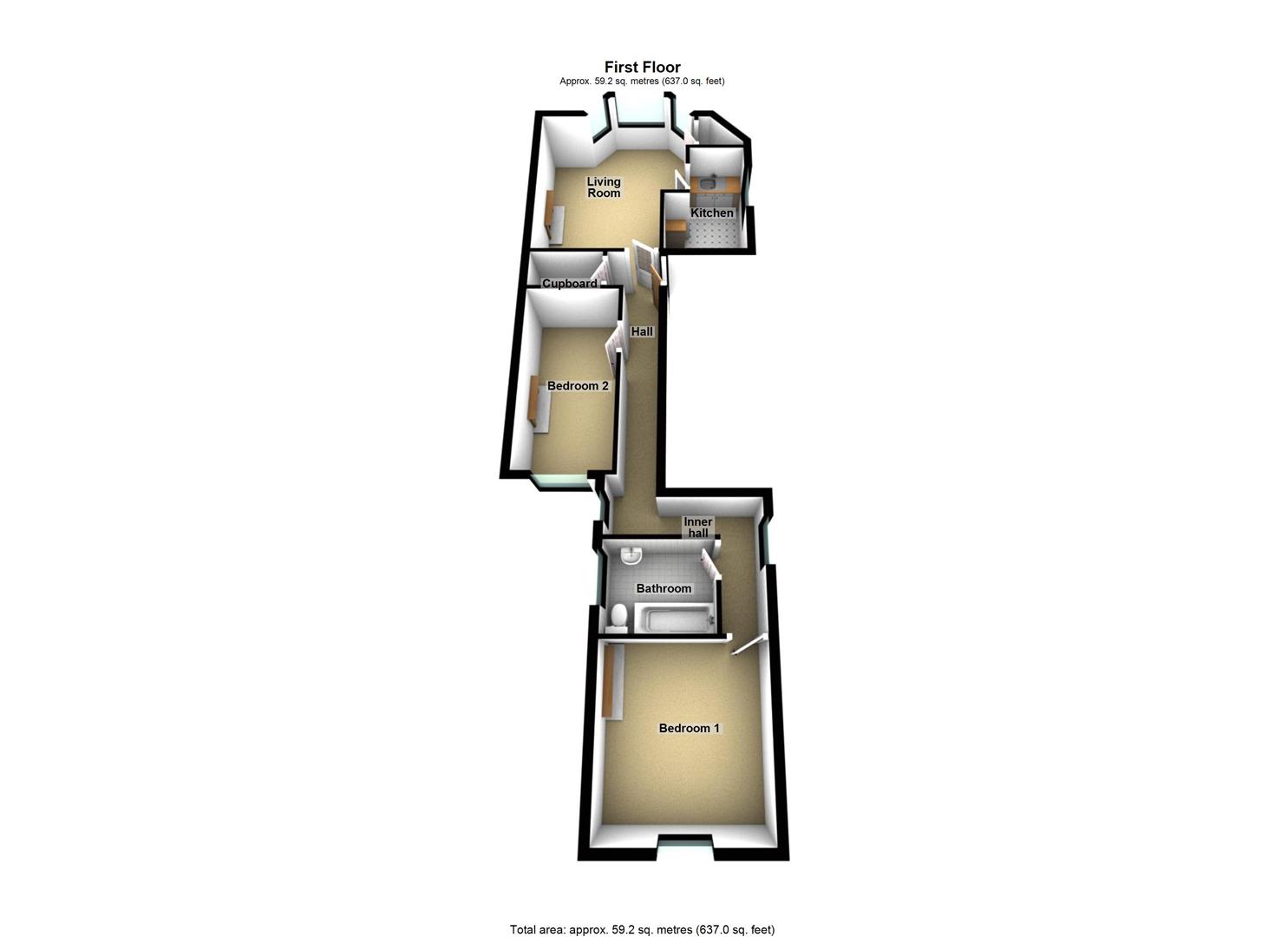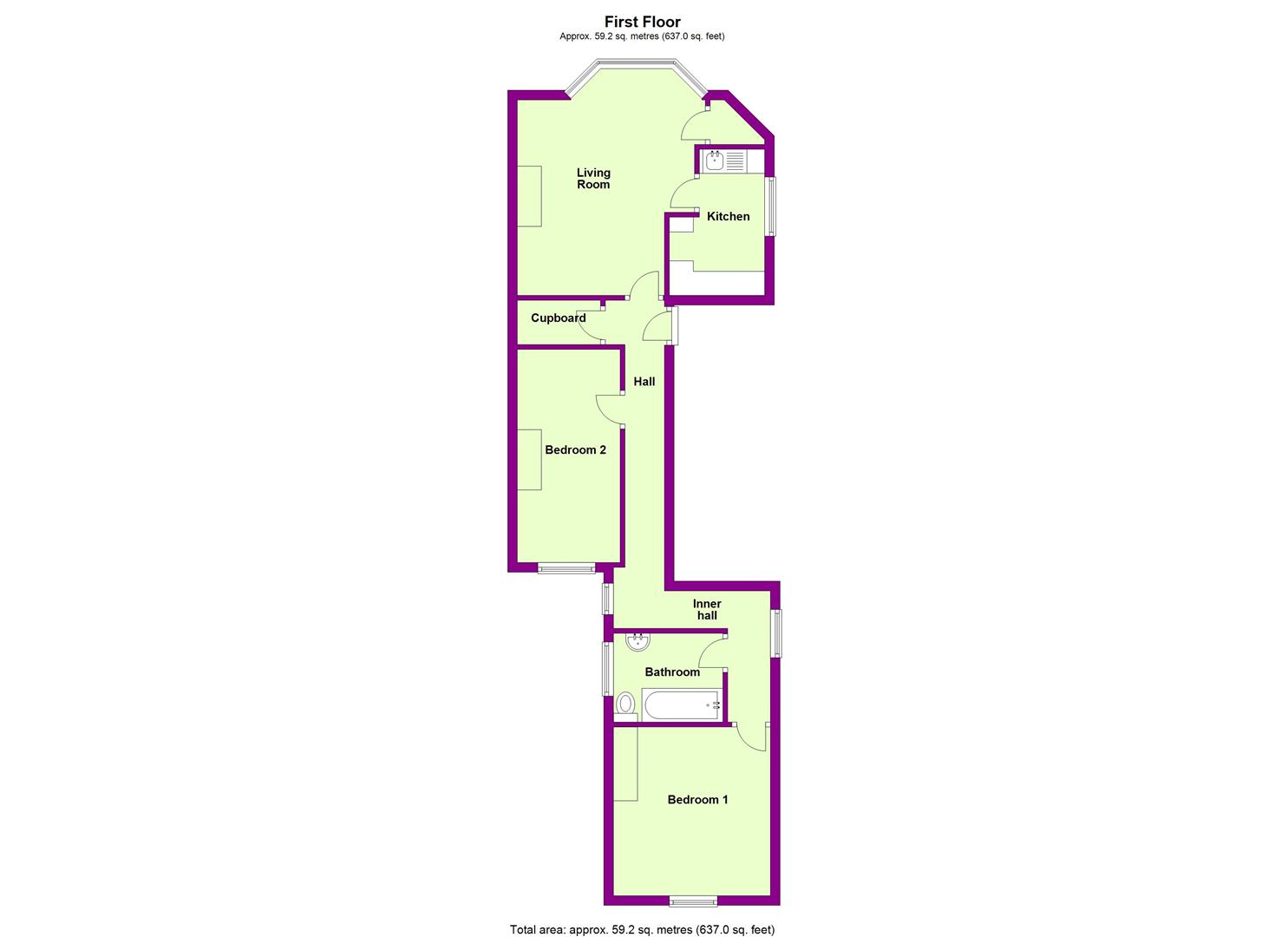 Double glazed bay window overlooking the front, radiator, telephone point, TV point, cupboard housing gas combination boiler and shelving.