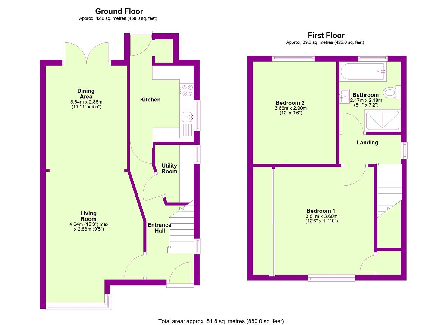 Upstairs, well appointed bathroom features both a separate shower and bath. The two well-proportioned bedrooms offer plenty of space for storage. Double glazing and efficient gas central heating.